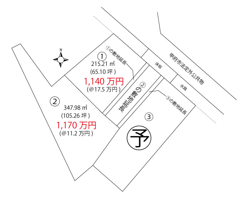 | ダウンロード | 甲府宮原町3区画分譲地チラシ 02_造成図面 甲府市宮原町3区画最終電柱計画図 |