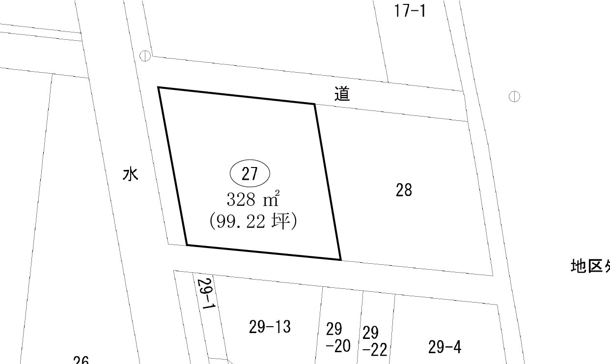 | 備考 | ※上水道分水工事必要(約50m)・下水道分水工事必要(約50m) ※契約不適合責任免責 ※農地法5条の許可要す |